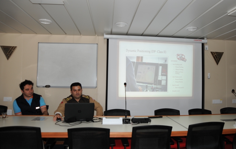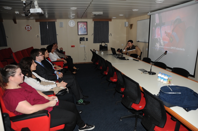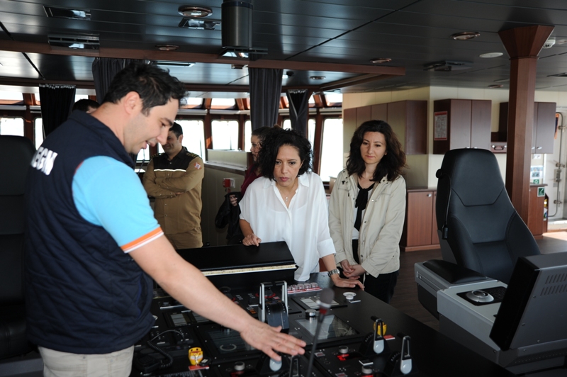 İstatistik ve Risk Yönetimi Dairesi Başkanlığı personelinin de eşlik ettiği ziyarette, sigortacılarımızdan ve gemi personelinden gemimizin teknik özellikleri ile Kuruluşunuzun imkân ve kabiliyetleri hakkında bilgi alınarak gemide çeşitli incelemelerde bulunulmuştur. |