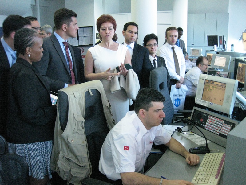 IMO tarafından, denizcilik alanında öğrenci yetiştirmek amacıyla İsveç’te kurulmuş olan Dünya Denizcilik Üniversitesi’nin (WMU) öğrenci ve öğretim üyelerinden oluşan 19 kişilik heyet, Kuruluşumuzun İstinye’de bulunan Gemi Trafik Hizmetleri Merkezi’ni (VTS) ziyaret ettiler. |